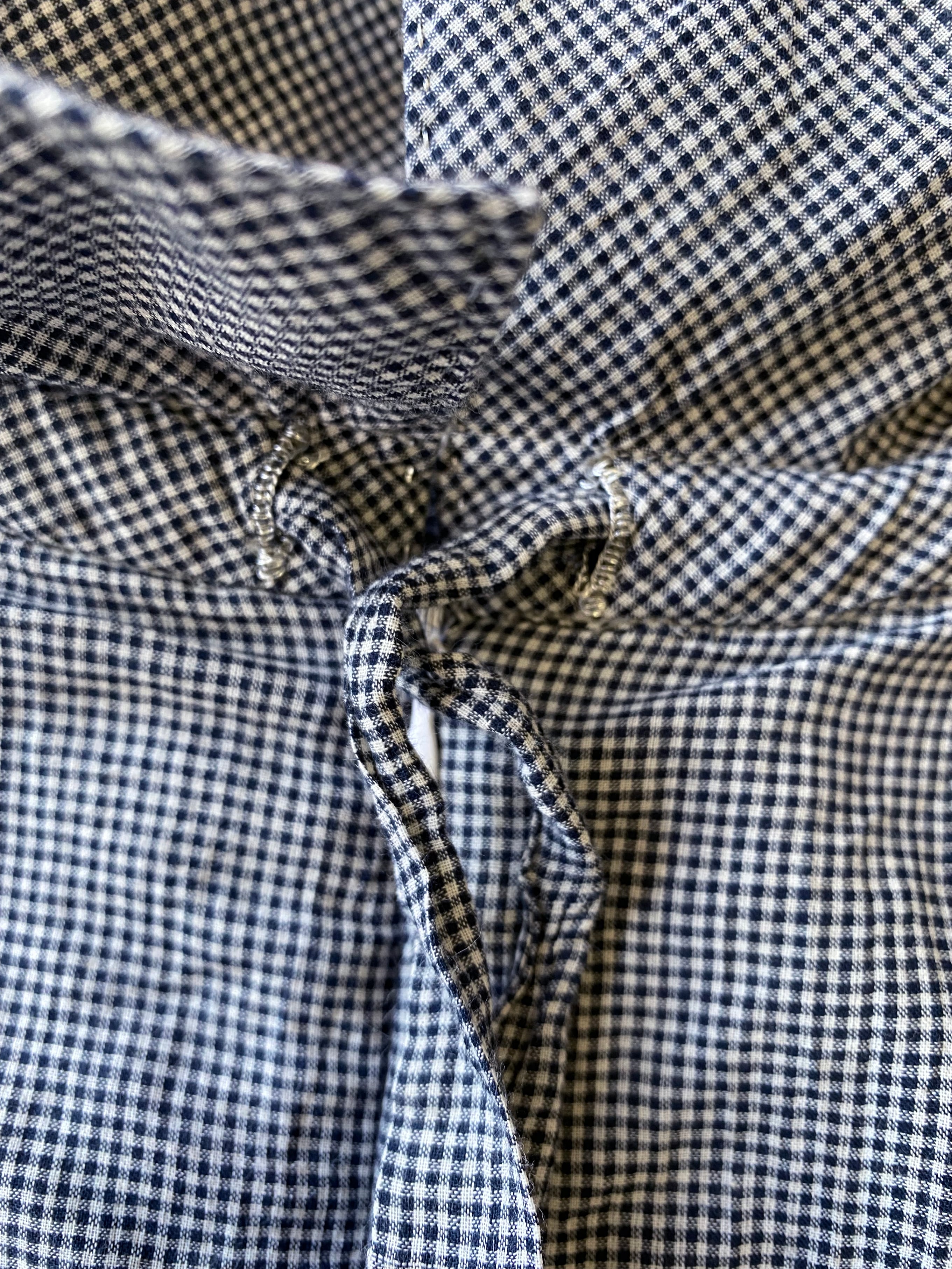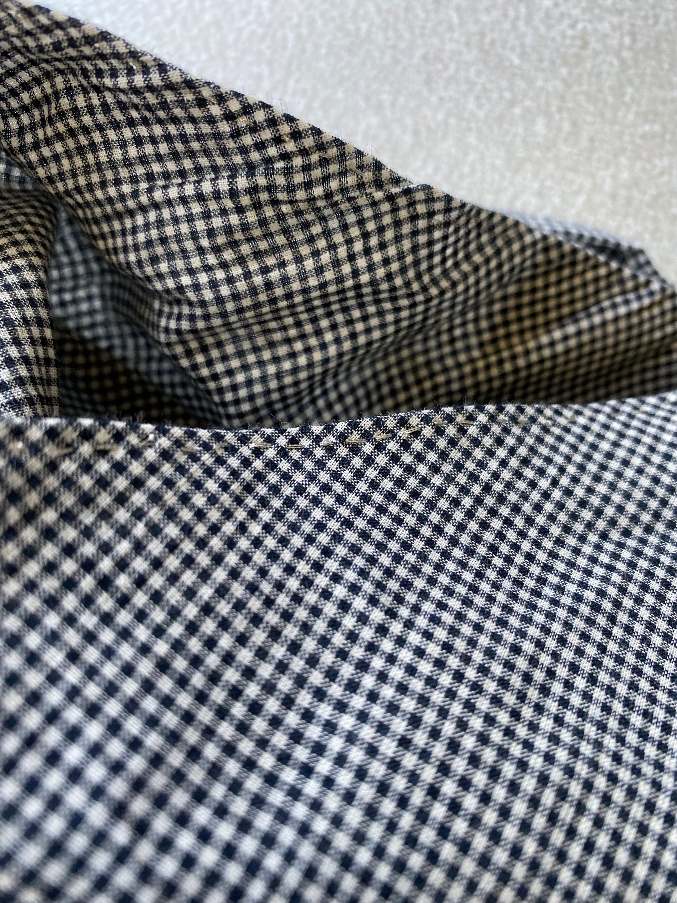 High neck gater blouse, "black pin check" khadi cotton