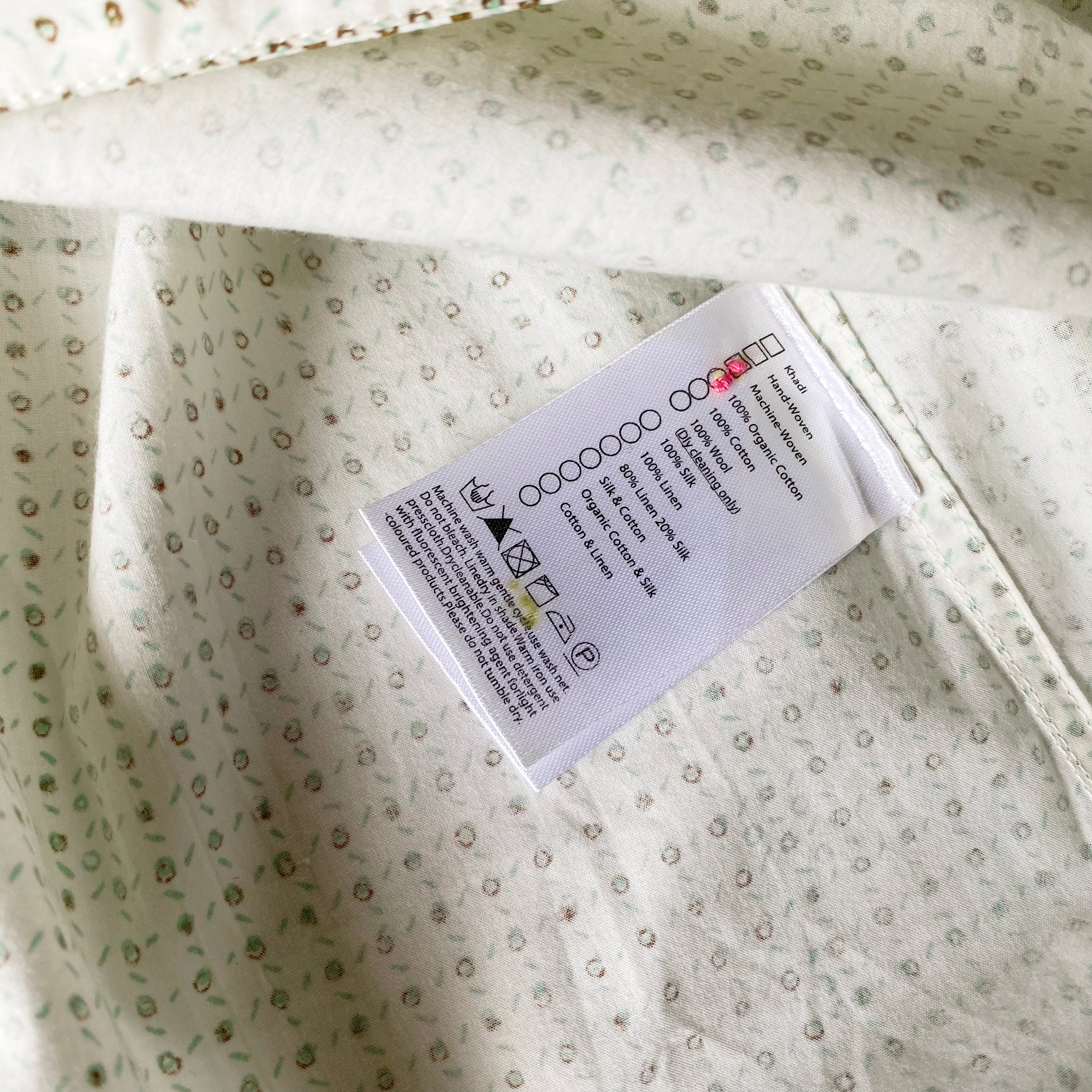 こちらの商品はインドでハンドメイドで作られています。そのため一点一点表情が異なります。ちょっとした糸の太さの違い、色ムラ、不均一な織りは、生地に奥行きと表情を与えてくれます。生地の個性としてお楽しみください。