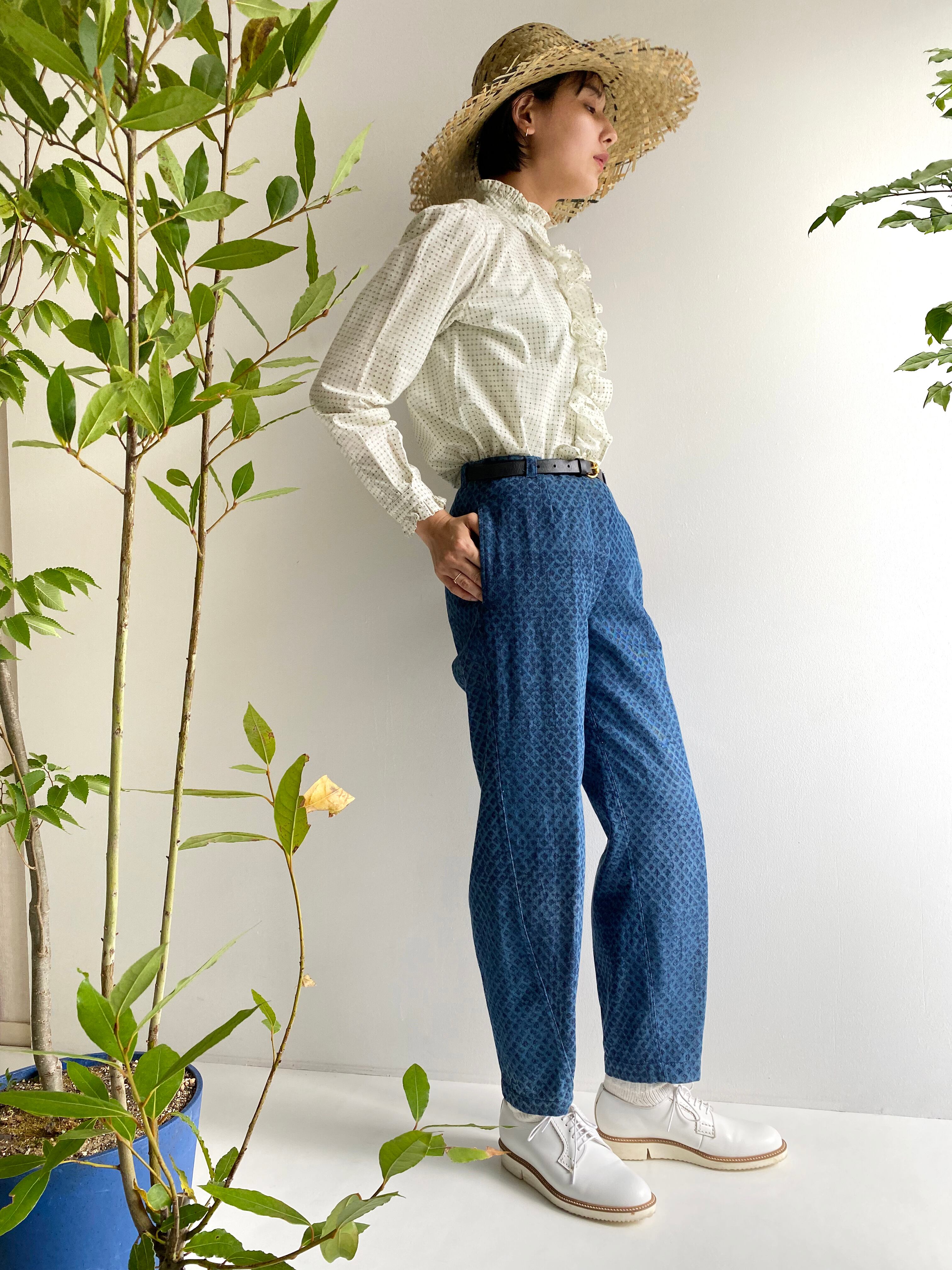 Frill blouse "block print geometric" organic cotton