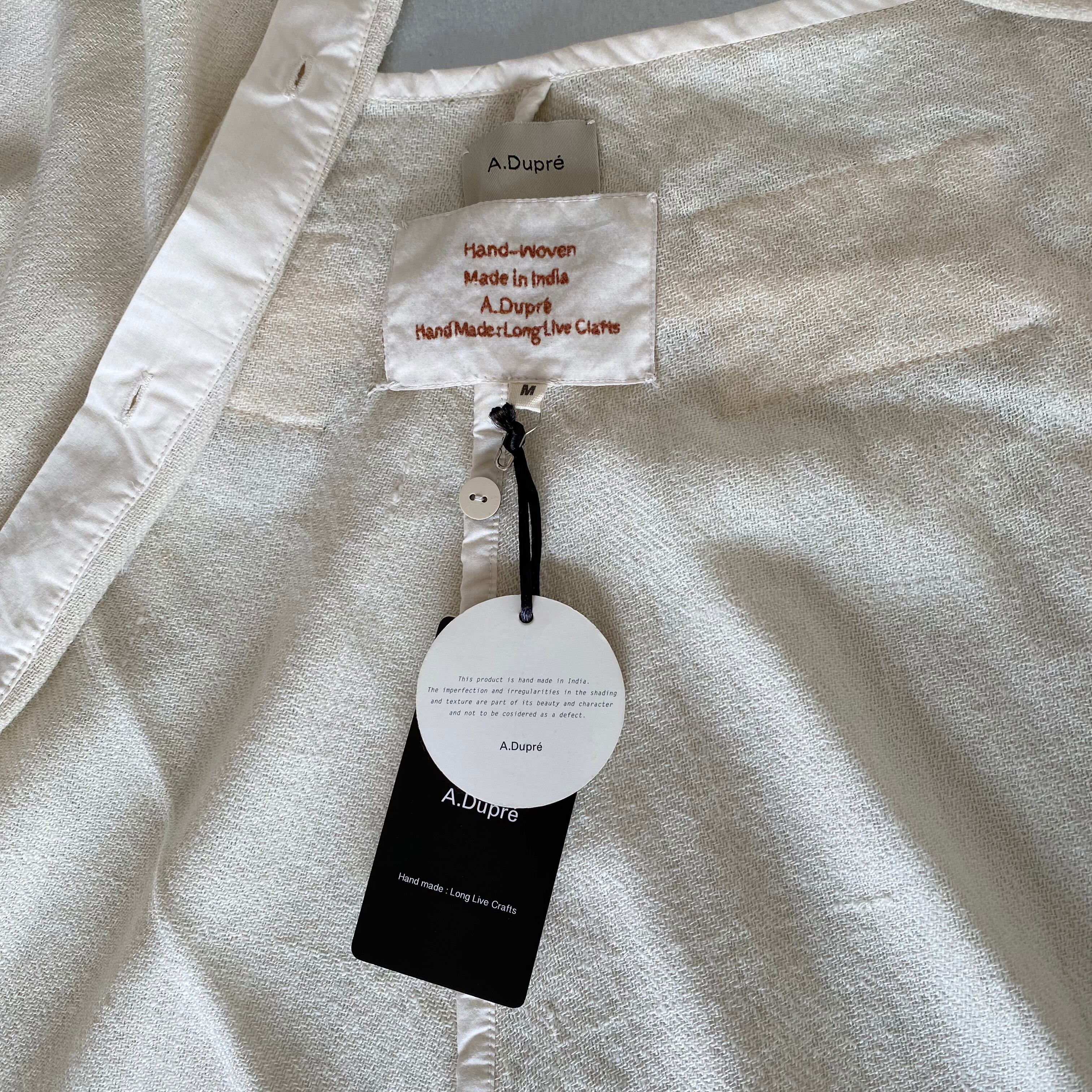 こちらの商品はインドで手織りした生地を使用し、現地でハンドメイドで作られています。そのため一点一点表情が異なります。ちょっとした糸の太さの違い、色ムラ、不均一な織りは、生地に奥行きと表情を与えてくれます。生地の個性としてお楽しみください。