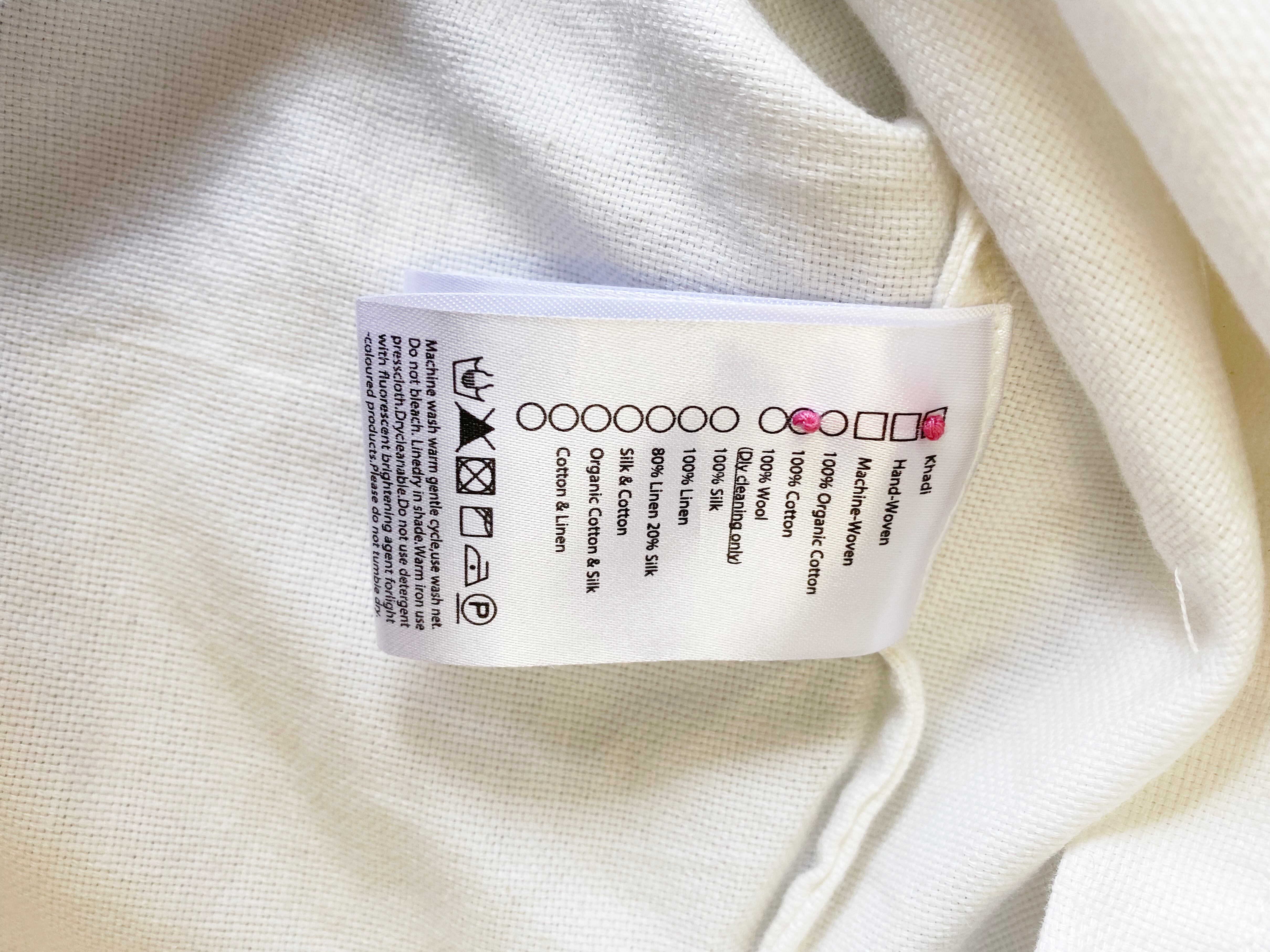 こちらの商品はインドで手織りした生地を使用し、現地でハンドメイドで作られています。そのため一点一点表情が異なります。ちょっとした糸の太さの違い、色ムラ、不均一な織りは、生地に奥行きと表情を与えてくれます。生地の個性としてお楽しみください。