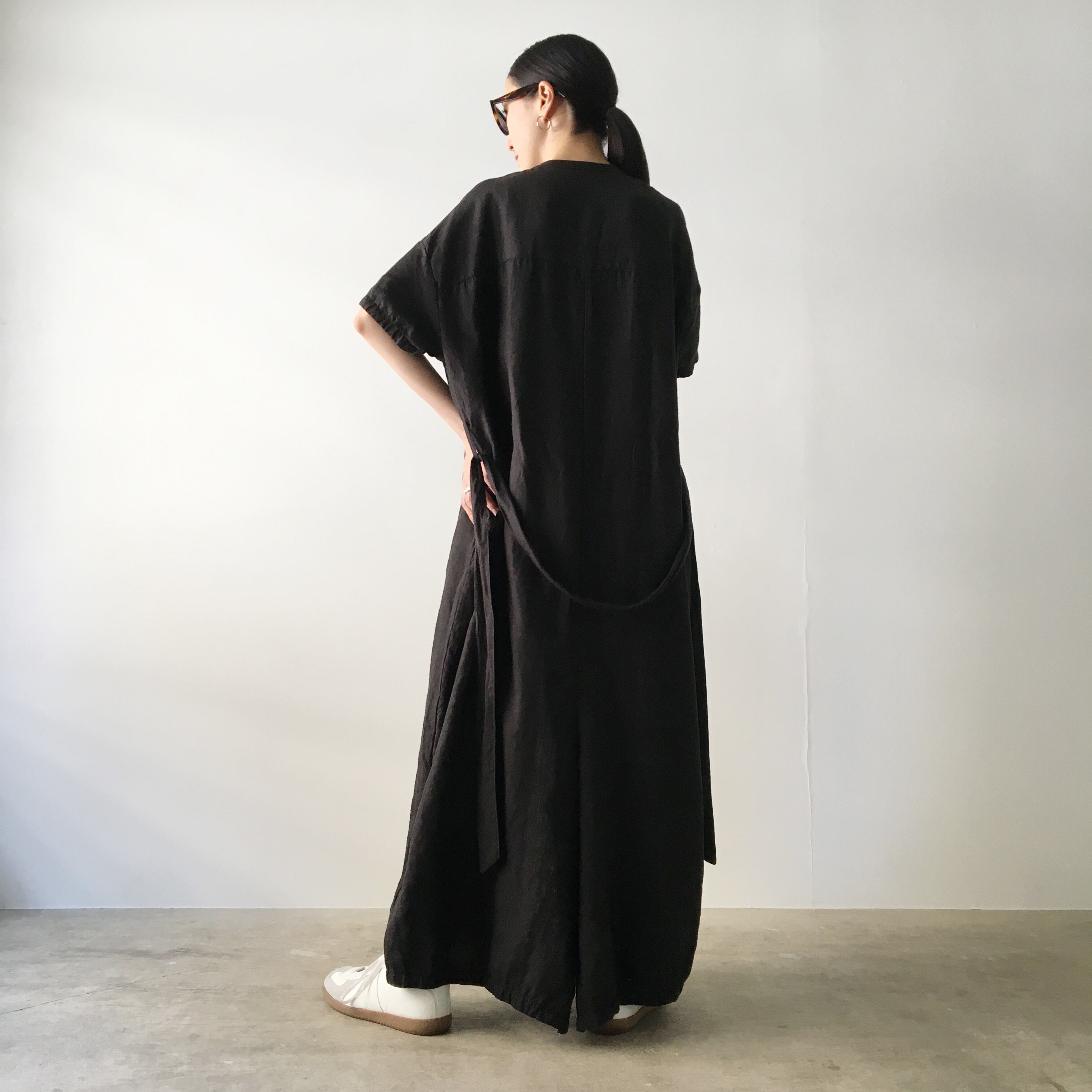 3way仕様のアイテム。前のボタンを全て留めることでオールインワンに、股下のボタンを外しワンピースに、全てのボタンを外して羽織にと、様々な着こなしを楽しんでいただけます。柔らかな質感のカディコットン素材を使用。