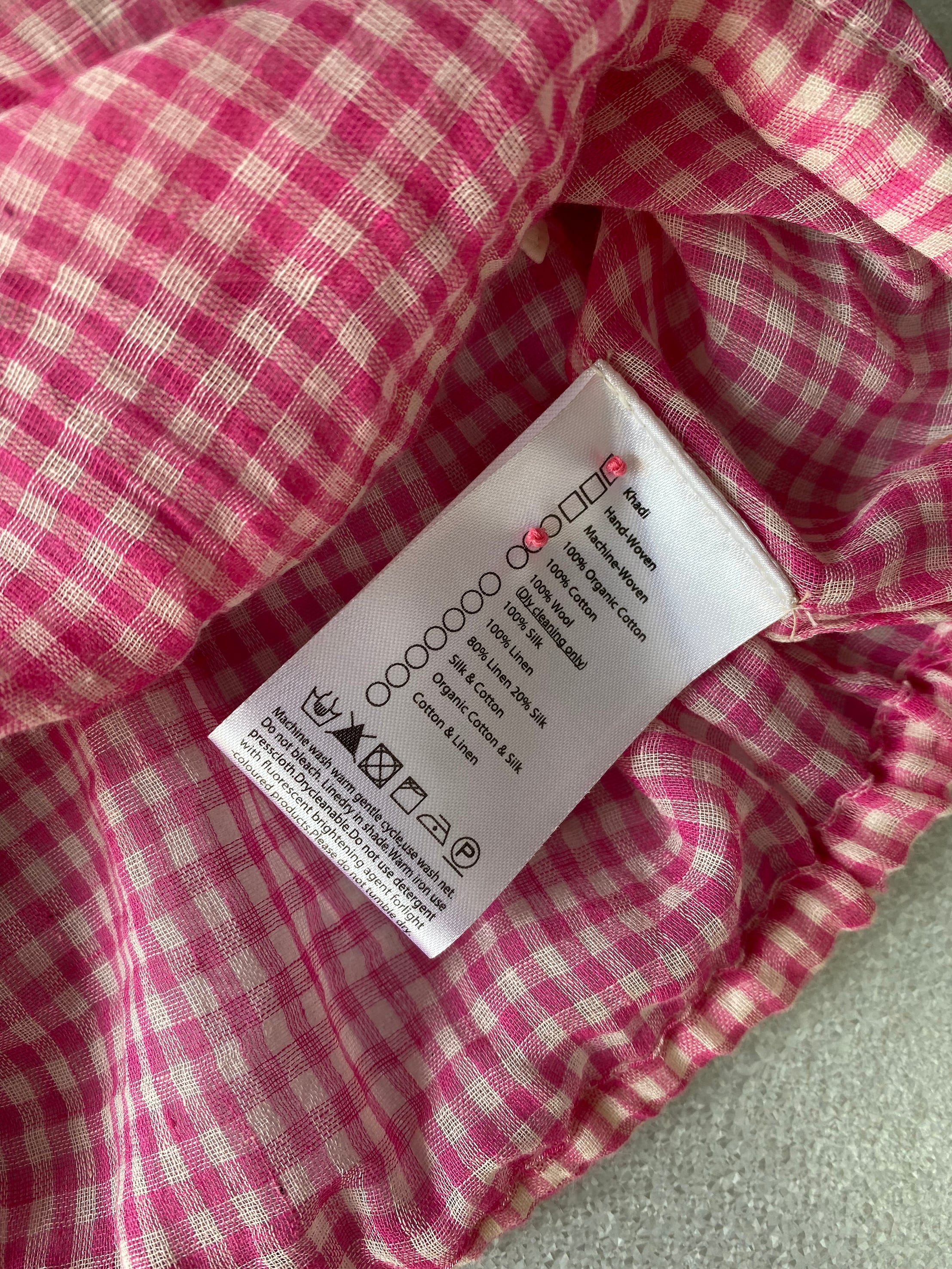 Frenchsleeve string short length top "light pink gingham check " khadi cotton