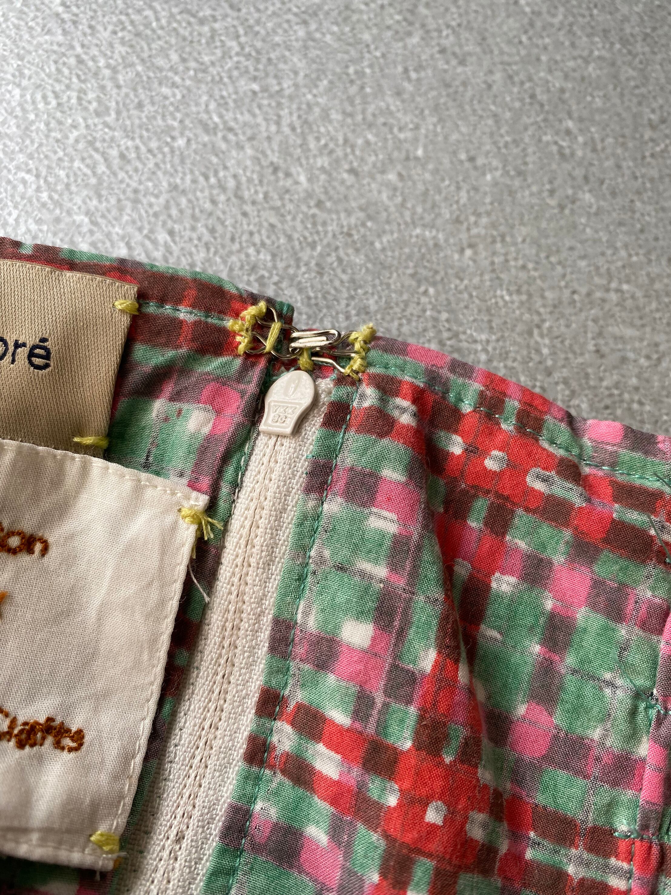 裏地には機械織オーガニックコットンタイプライターを使用。強度と程よい張りを兼ね備えた生地でしっかりとした仕上がり。後ろホック手纏り。