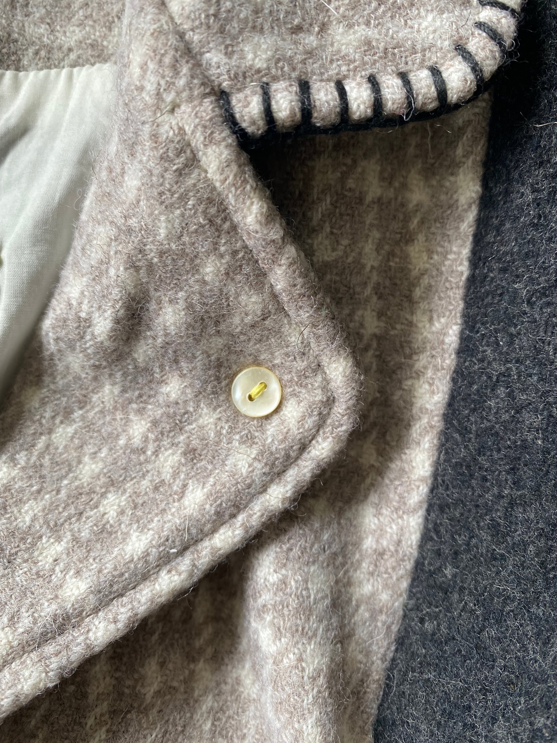 Two style sleeve coat "Ice gray hound's-tooth check & black" khadi wool