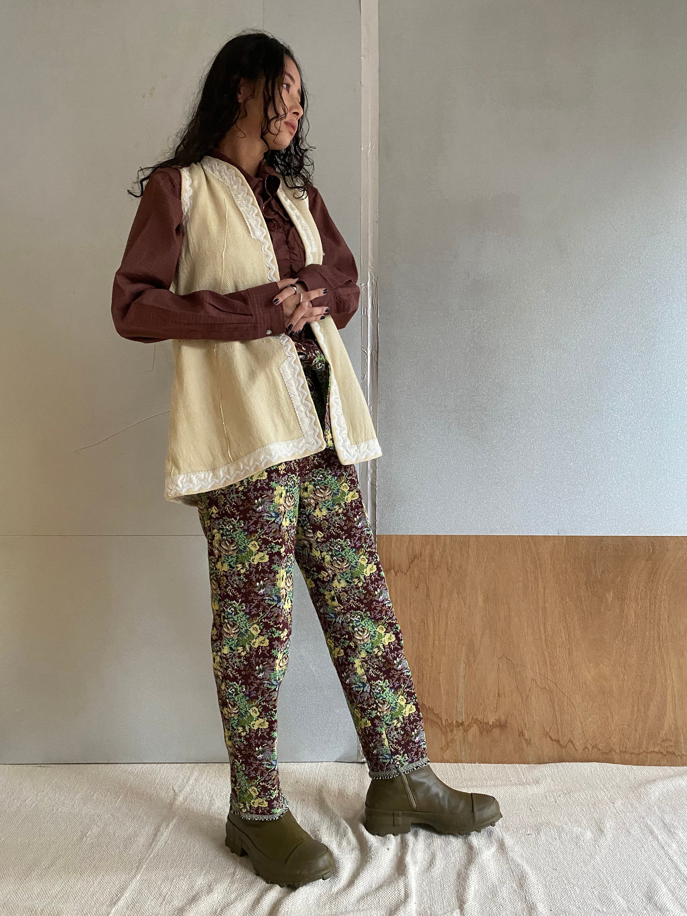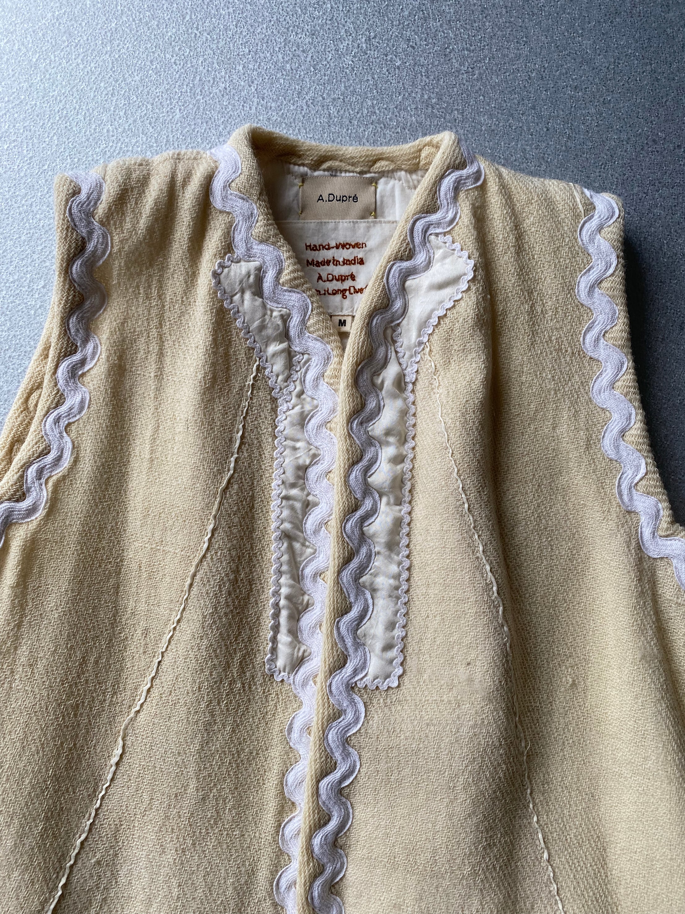 こちらの商品はインドで手織りした生地を使用し、現地でハンドメイドで作られています。そのため一点一点表情が異なります。ちょっとした糸の太さの違い、色ムラ、不均一な織りは、生地に奥行きと表情を与えてくれます。生地の個性としてお楽しみください。