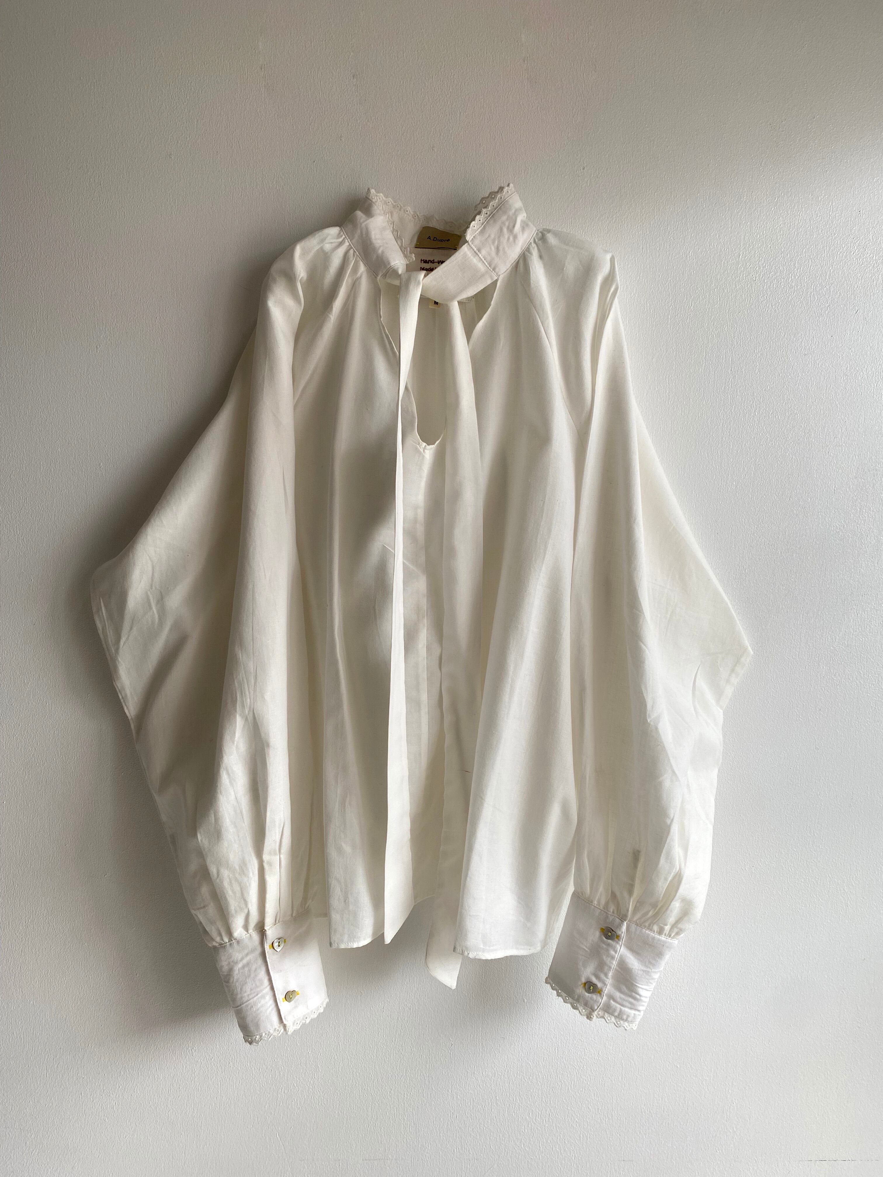 Two way raglan sleeve bow tie blouse "white" Khadi cotton