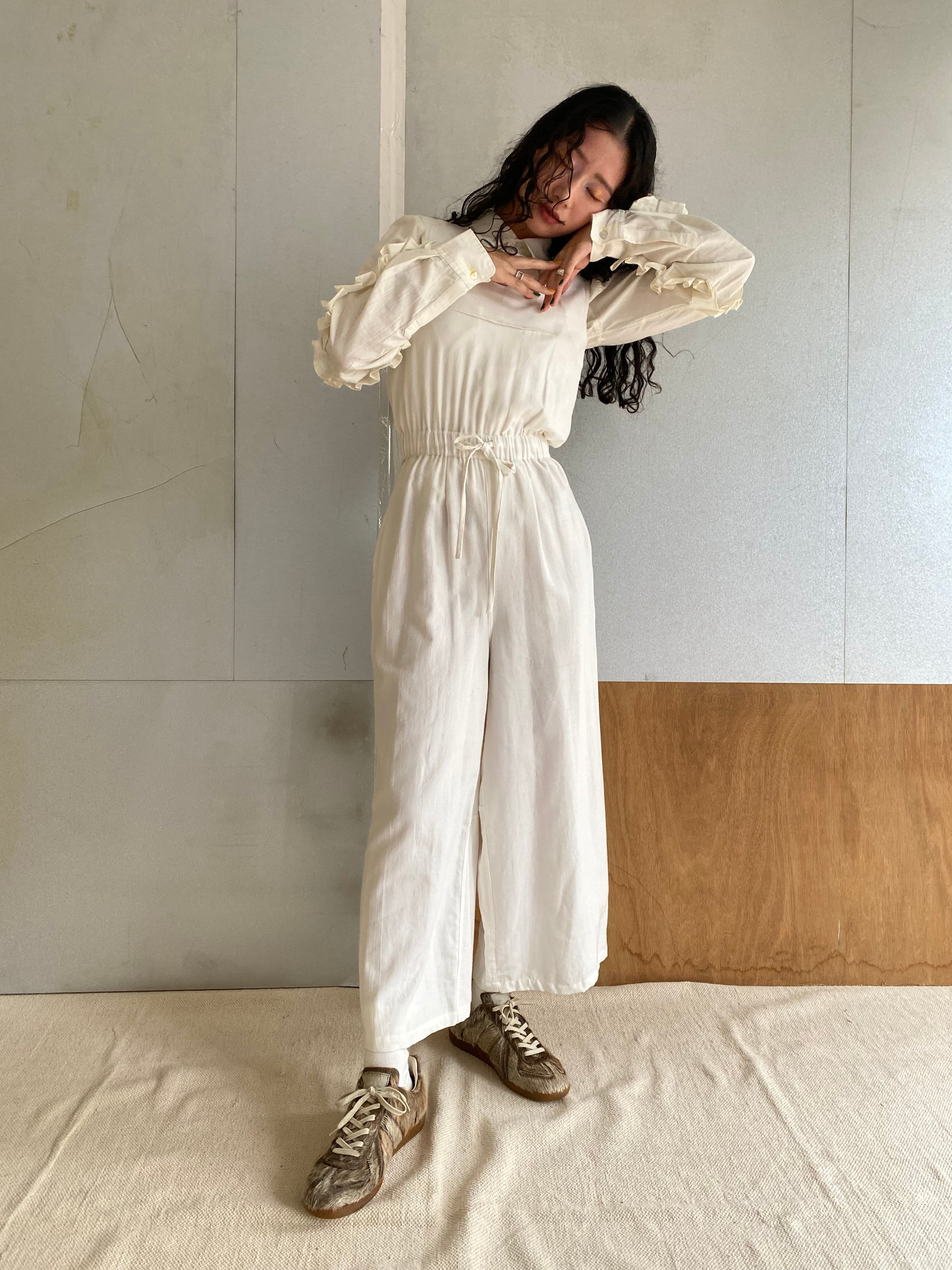 Strange ruffle sleeve blouse, "white" khadi cotton